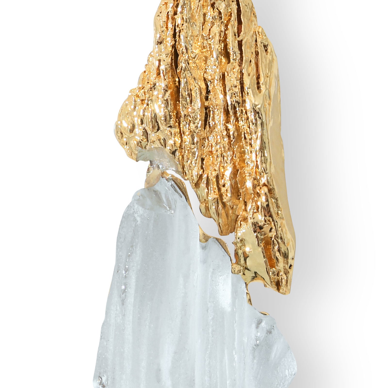 Inspiré par les reliefs naturellement façonnés après les époques glacières, ce bijou a été sculpté à la main dans mon atelier. Le bronze est travaillé en cire perdue, technique de fonderie d’art, avant d'être doré à l'or fin 24K. Un bijou à la fois naturel et fort pour apporter une note singulière et élégante à vos tenues quotidiennes et/ou extraordinaires.
