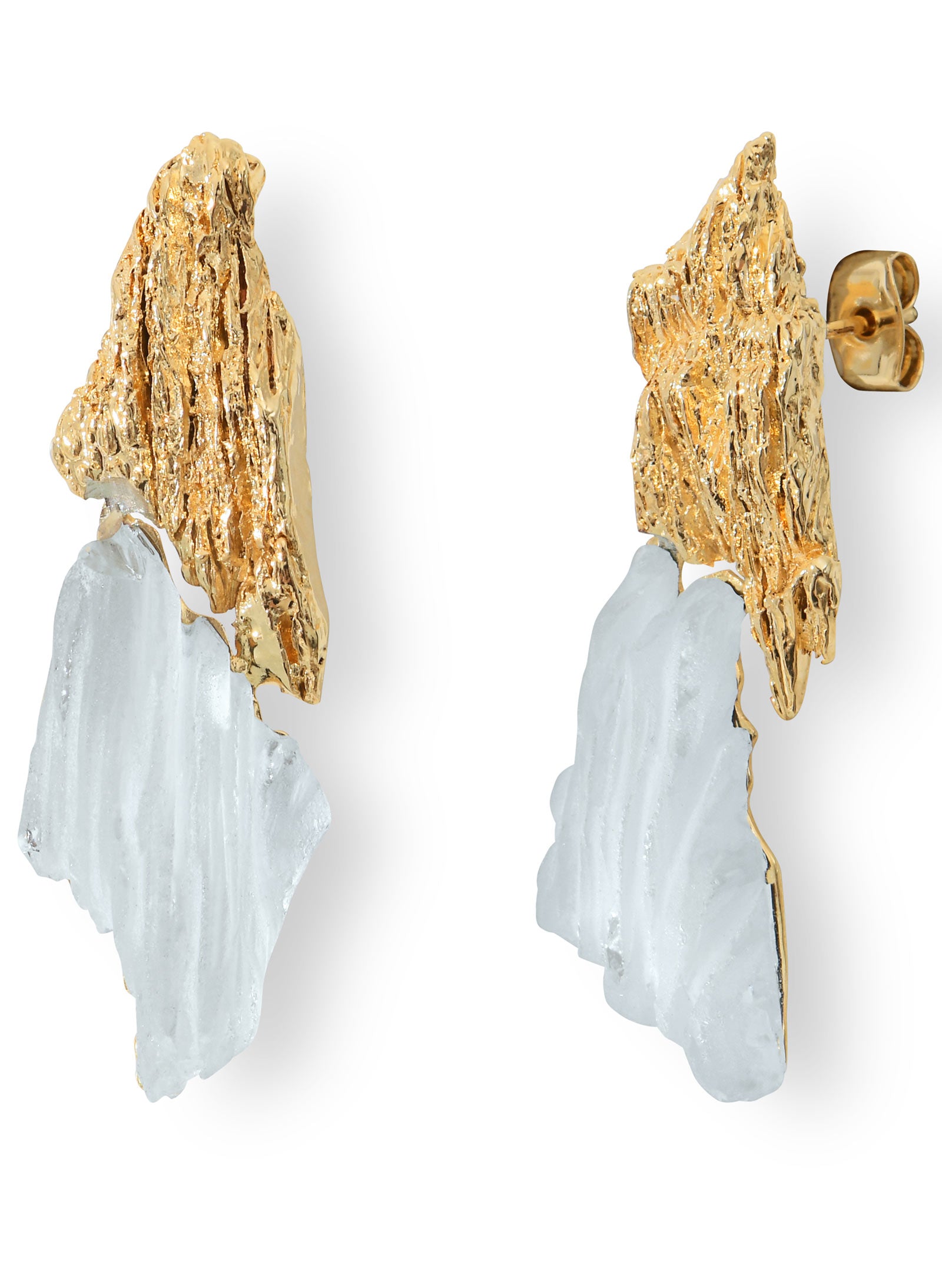 Boucles d’oreilles sculptées en bronze et dorées à l'or fin 24K. Tige en argent 925. Entièrement fait à la main. Les miennes! — Marion.
