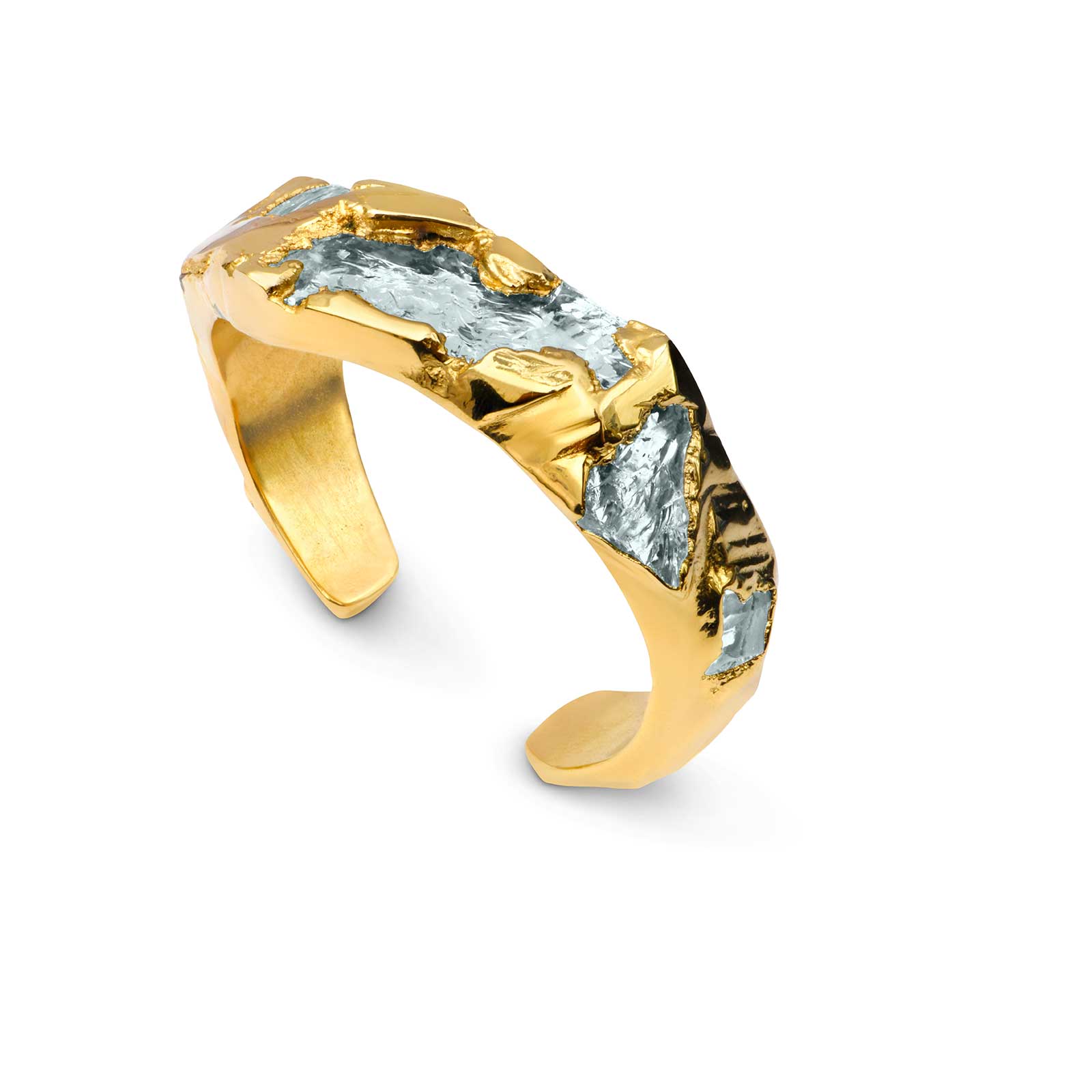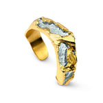 Ce bracelet manchette unique est sculpté en résine incrusté de miroirs taillés à la main, technique chère à la marque Fillancq. L’ensemble est électroformé, plaqué or 24K. Ce bijou d'exception étant fabriqué sur mesure, il est recommandé de mentionner en commentaire de commande votre tour de poignet en le mesurant à l'aide d'un mètre ruban.