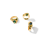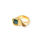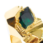 Cette bague est sculptée à la main par Marion Fillancq. Sa pierre couleur émeraude est en cristal. Comme toutes les bagues Fillancq, elle est plaquée or 24K.