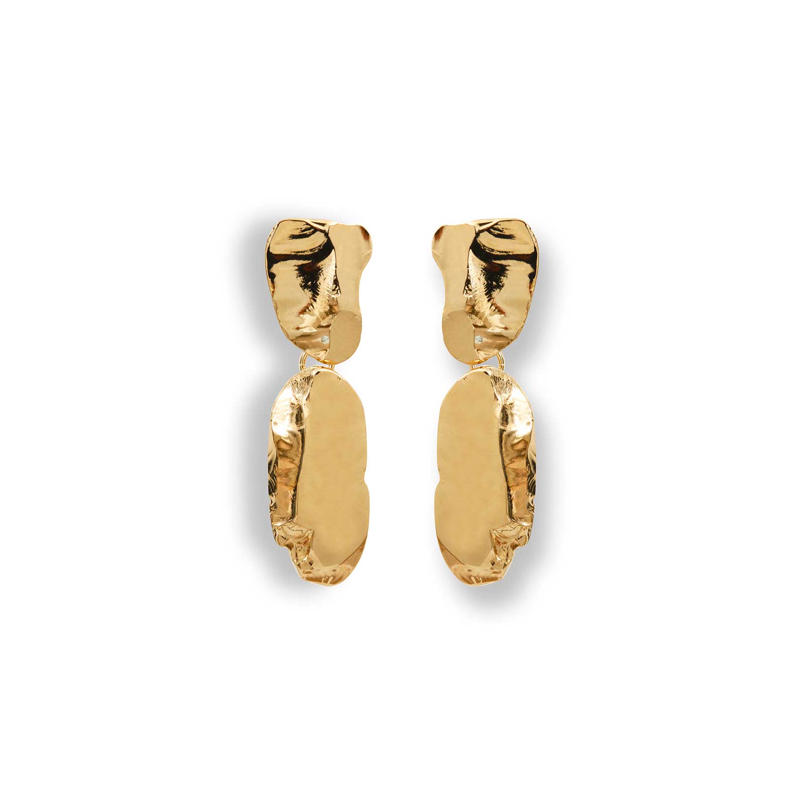 Ces boucles d’oreilles sont sculptées à la main en verre, puis moulées pour réaliser un modèle en cire perdue et un tirage en métal. Comme toutes les boucles d’oreilles Fillancq, les clous sont en argent 925. Dorées à l'or fin 24K couleur champagne, leur longueur est de 4 centimètres.