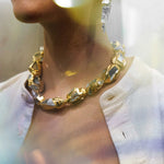 THE masterpiece Fillancq pensée et fabriquée en 2024. Il faut se rendre compte : chaque perle est sculptée, une à une. Chaque perle est un bijou à part entière. Chaque perle comporte ses miroirs facetés et polis à la main, taillés par pression, sertis en métal plaqué or 24K. Même le fermoir aimanté est un petit bijou sculpté.