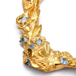 Ce collier unique est sculpté en résine incrusté de pierres en cristal couleur améthyste. L’ensemble est électroformé, plaqué or 24K et articulé pour un tombé parfait. Le fermoir est aimanté, solide. Click! Comme dim est fabriqué sur mesure, je vous invite à mentionner en commentaire de commande votre tour de cou!